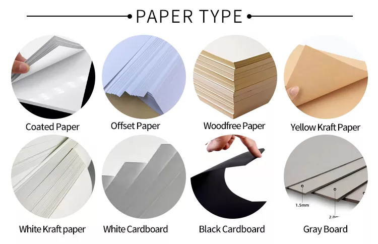 2.Text: Various paper(matte paper, offset paper, woodfree paper, kraft paper, specialty paper etc..) |